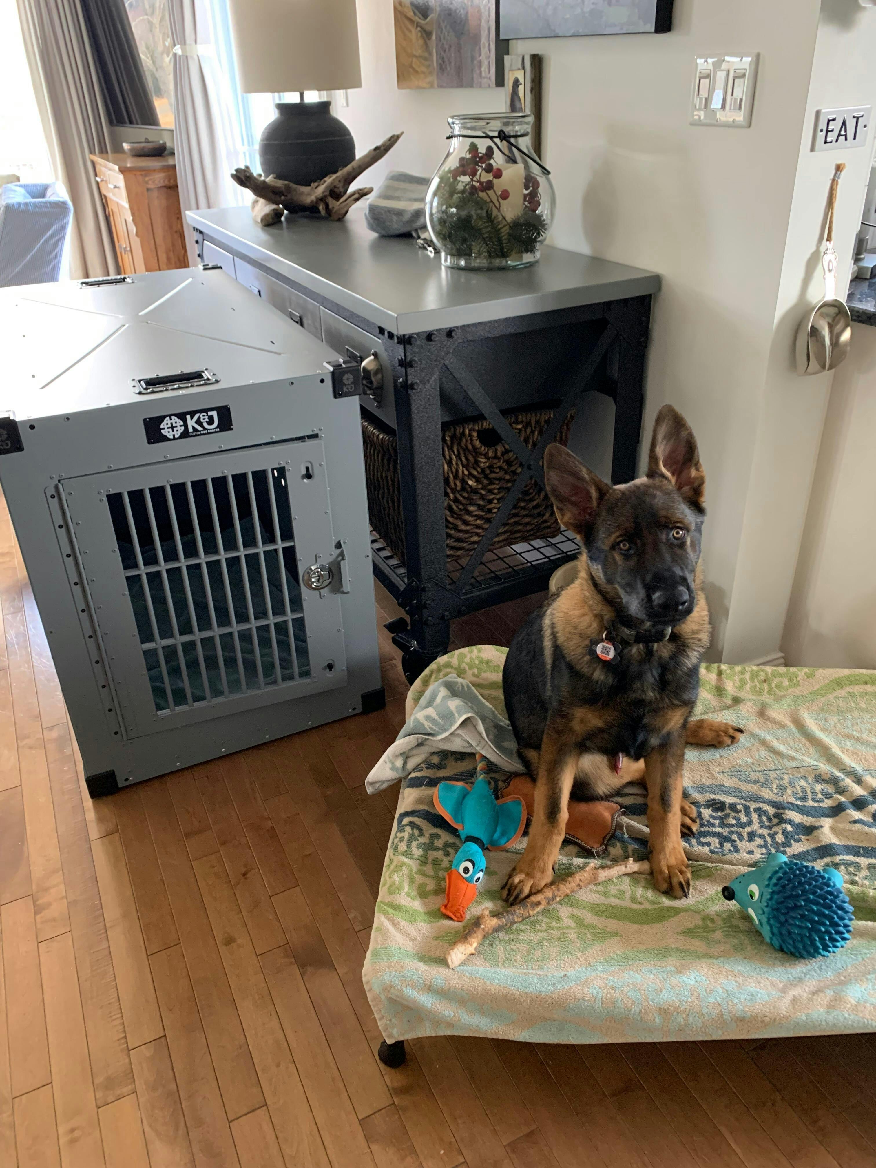 We love our K and J crates. Exceptional quality and cool colours. Our dogs have plenty of room and additional comfort with accessories such as padded mats. The team are easy to deal with, provide prompt communication and friendly service! What a pleasure to have such high quality Canadian made dog crates. We invested in two XL crates and we know that they will last a lifetime!